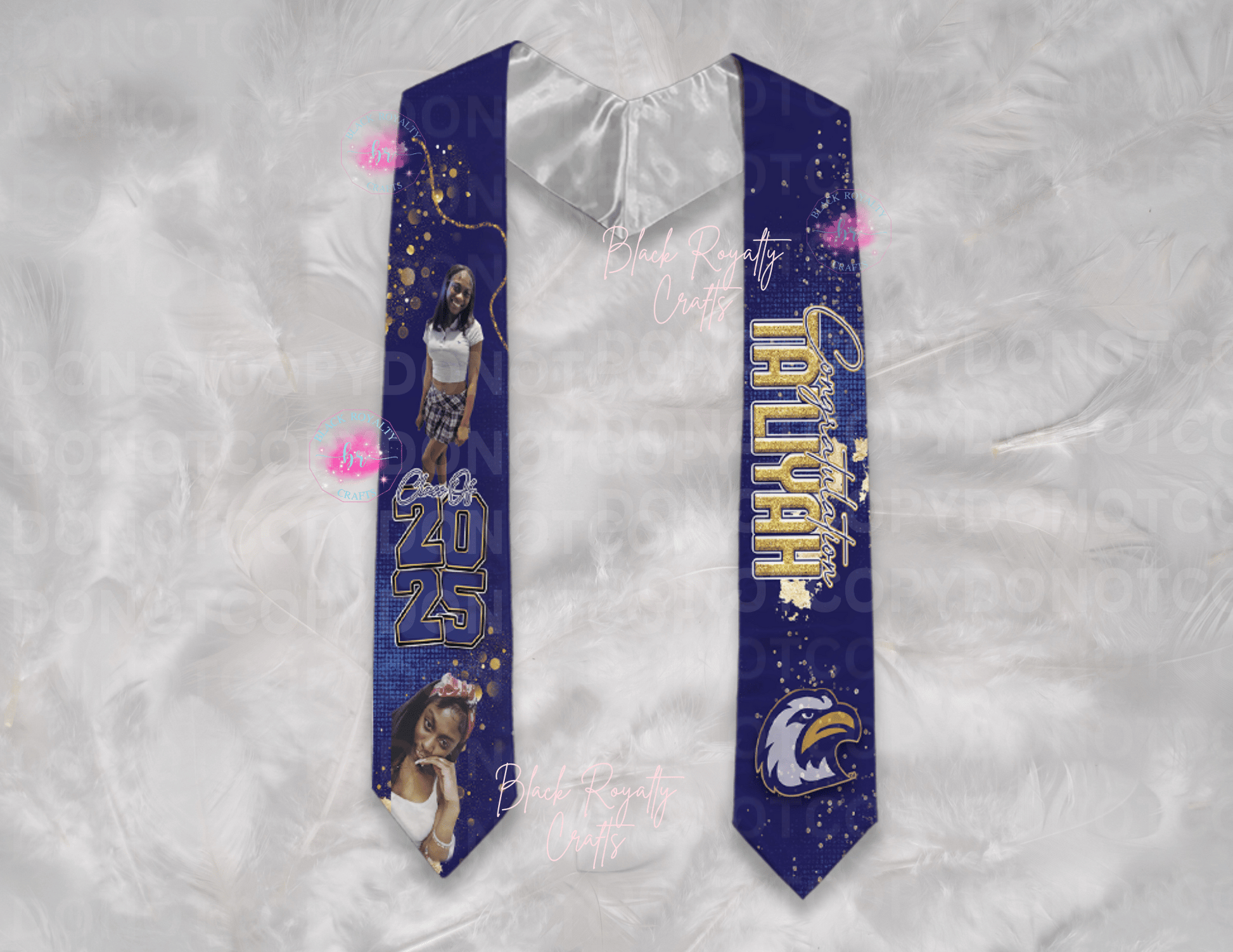 This personalized stole is the perfect gift for a senior graduating in 2024-2025. With a bold and eye-catching design, it will stand out during the graduation ceremony. Show your support and pride with this unique and memorable accessory.